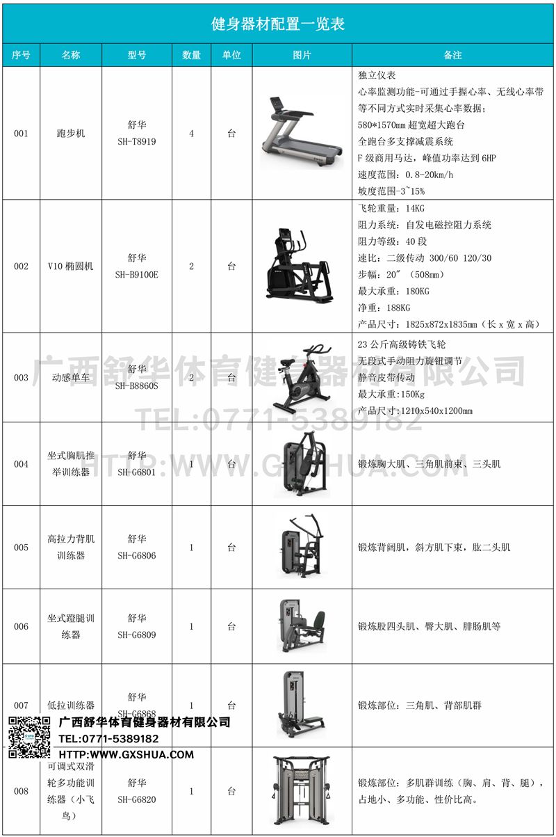 1.好博体育V9跑步机SH-T8919*4台-580*1570mm超宽超大跑台-跑感舒适,跑台整体安全稳定;全跑台多支撑减震平台,保证跑台超强支撑力,达到180kg支撑,满足专业健身房需求。F级商用马达-超强马达,AC 3.0HP 交流,峰值功率达到6HP,F级商用品质。速度范围达到0.8-20km/h;V9跑步机可实现跑台扬升功能,坡度范围-3~15%,满足客户不同的锻炼需求。