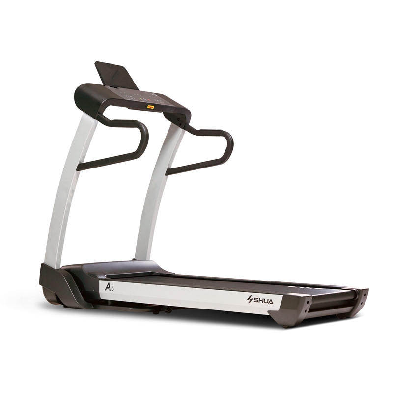 小型家庭健身房主要配置了好博体育A5跑步机SH-T5500-Y1、A5-S动感单车SH-B599、单人站综合训练器SH-G6501。跑步机可以锻炼腿部肌肉和心肺功能,好博体育A5跑步机采用全新六位缓冲柱减震系统,全面呵护膝盖,让健身运动更加舒畅。