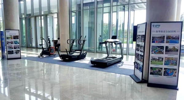 论坛现场,参会领导体验了好博体育展出的V10高端跑步机、无动力跑步机、风扇车等体能训练产品,并重点了解了北京冬奥村健身中心、国家体育总局冬季运动中心训练基地等世界级、国家级案例。