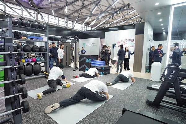 此次好博体育参展的最大亮点在于其别出心裁的展位设计。不同于传统的器材展示,好博体育此次以“好博体育健身”门店空间布局的概念来展现,将展位分为前台、洽谈区、体测区、团课区、私教区、有氧区以及综合训练区等多个区域。这种布局方式旨在为参展观众提供全方位、沉浸式的体验,使其能够更深入地了解“好博体育健身”的核心理念和服务。