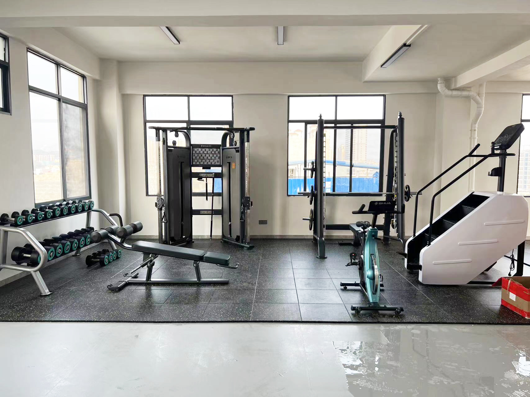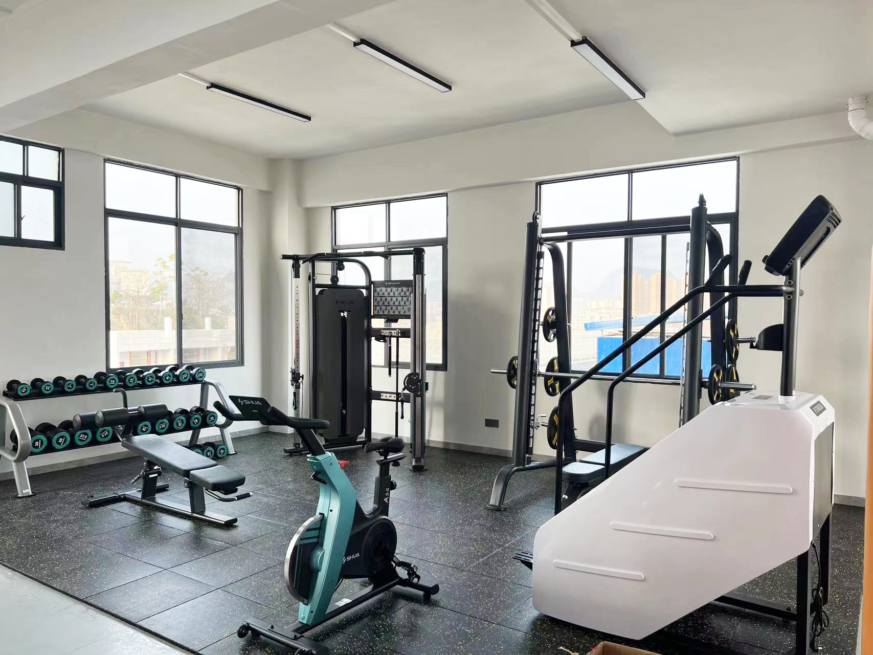 力量器械配置了好博体育可调式双滑轮多功能训练器(小飞鸟)SH-G6820、史密斯机训练架SH-G6853、腹肌练习椅SH-G6879 、康健10付哑铃套组,依据锻炼方式不同,能够满足日常多肌群训练(胸、肩、背、腿),让企事业职工在有限的器材里能够得到全方位锻炼身体肌肉。让职工身体更健硕,在工作中释放激情活力,打造完美职场形象。在运动过程中增进职工之间的情感交流,促进各部门紧密融合,增强职工归属感,增强企事业的凝聚力。