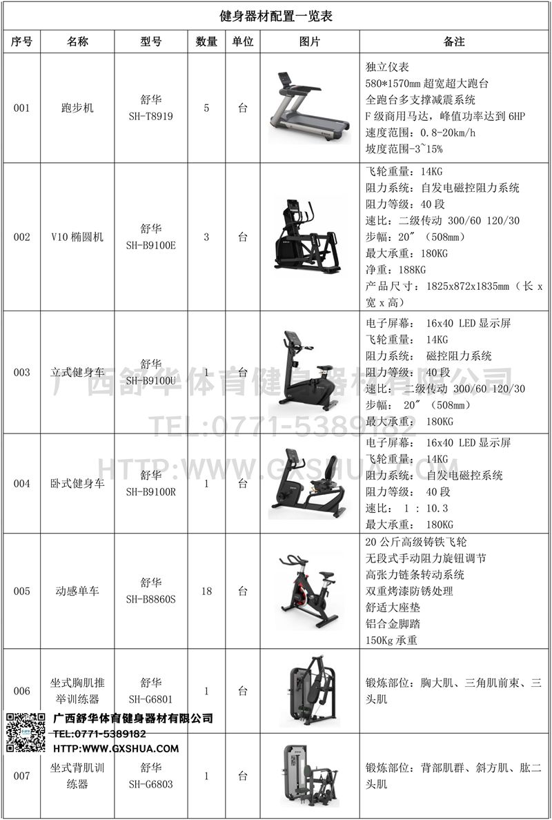 1.好博体育V9跑步机SH-T8919*5台-独立仪表-简洁大气,全新外观设计,健康运动新选择;心率监测功能,可通过手握心率、无线心率带等不同方式实时采集心率数据;580*1570mm超宽超大跑台-跑感舒适,跑台整体安全稳定;全跑台多支撑减震平台,保证跑台超强支撑力,达到180kg支撑,满足专业健身房需求。