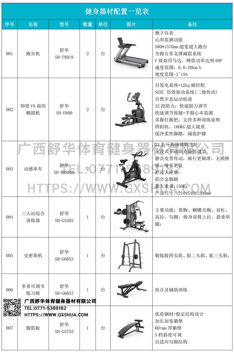 1.好博体育V9跑步机SH-T8919*2台-独立仪表-简洁大气,全新外观设计,健康运动新选择;心率监测功能,可通过手握心率、无线心率带等不同方式实时采集心率数据;580*1570mm超宽超大跑台-跑感舒适,跑台整体安全稳定;全跑台多支撑减震平台,保证跑台超强支撑力,达到180kg支撑,满足健身房需求。