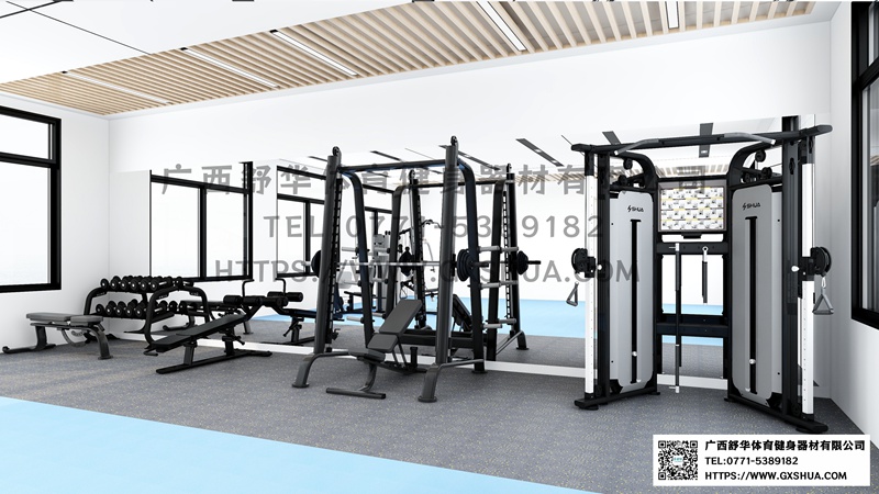 小飞鸟(1台),史密斯机(1台),多重可调节练习椅1台),腹肌训练器(1台),6付哑铃套组(1套),可调哑铃凳(1张),可以实现对不同肌肉群的针对性训练,满足肌肉训练需求,全方位激活身体机能。