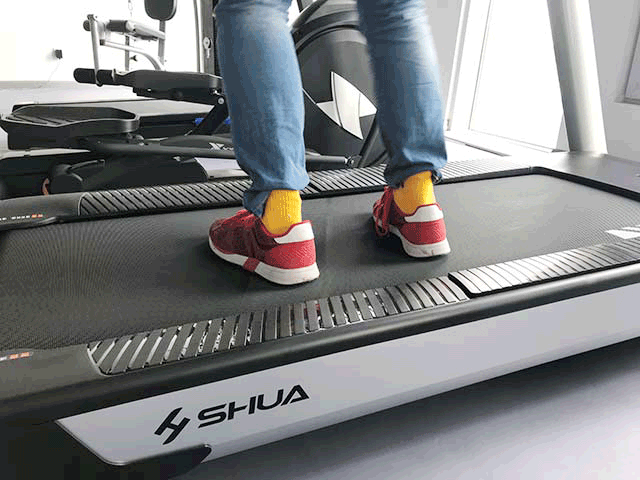 好博体育x6跑步机减震方面采用6块内置高弹硅胶块,复检式双层加密跑板 。为了真实形象地体现减震效果如何,我们再次暴力登场。(如下图)小编同事体重180斤,在跑台上面往死里用力蹦跳,跑步机只有一些轻微的晃动。小编同事反馈,双脚完全没有疼痛感,反而感觉很有弹性。